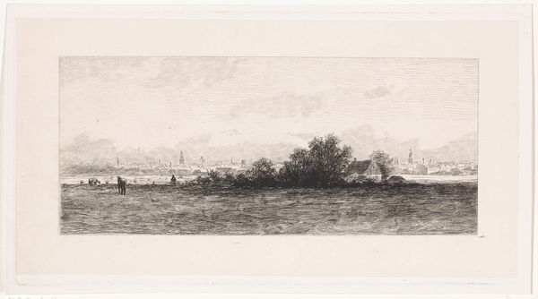 Editor: Here we have Ernest Haskell's "Heldere ochtend," created in 1924. It looks like a delicate etching. I’m immediately struck by the quiet, almost melancholic, mood of the landscape. What stands out to you about this work? Curator: Well, immediately I think about the historical context of 1924. Post World War I, there's a sense of recovery, but also loss and questioning. Haskell's choice of such a tranquil, seemingly untouched landscape, executed with the starkness of etching, might be a commentary on what was lost and what remains. What do you think the absence of human figures contributes to this reading? Editor: That's interesting. The emptiness certainly amplifies the feeling of solitude, but perhaps also a sense of resilience in nature itself. It's almost like the landscape is bearing witness. Curator: Precisely. And consider Haskell’s identity as a white male artist during this period. Who gets to claim ownership, or even access, to these seemingly untouched spaces? How does that inform our understanding of the "melancholic mood" you perceived? Editor: It makes me think about land ownership, resource control… and who benefits from these idealized depictions of nature. Was Haskell intentionally critiquing that, or perhaps just oblivious? Curator: That ambiguity is key. His personal intention is less important than the conversation the work can provoke now. It can allow us to address not just environmental concerns, but also historical injustices embedded in landscape art. Do you find the style itself reinforces or contradicts this idea? Editor: I think the simplicity of the etching—the lack of romantic embellishment—keeps it grounded. It resists becoming overly sentimental, which gives the socio-political reading more weight, perhaps? I wouldn’t have seen that initially! Curator: Exactly. By bringing contemporary theoretical frameworks, such as postcolonial studies, to bear, we reveal these latent but incredibly relevant interpretations, making a 1924 landscape resonate profoundly today. Editor: I’m definitely seeing landscape art in a new, much more complex light. Thank you!