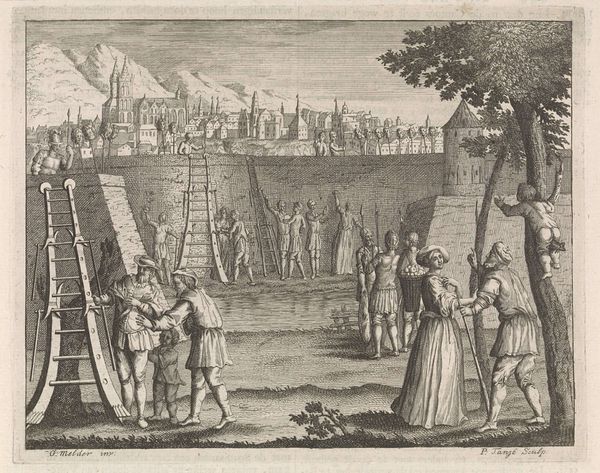 Editor: This is an engraving made between 1624 and 1626 by Daniël van den Bremden, currently at the Rijksmuseum. It's titled "Allegory on the rejection of peace proposals made by Peckius on behalf of the Spanish King, 1621". The intricacy of the line work is stunning. I'm curious, what catches your eye when you look at this piece? Curator: As a materialist, I'm immediately drawn to the means of production. This print, an engraving, makes it inherently reproducible and widely distributable, meaning the ideas represented within could be disseminated to a large audience, becoming a tool of political discourse. Consider the labor involved in its making, each line meticulously carved to create this dense image. Who was this message really for? Editor: That's a great point. So, the fact that it's a print elevates its social purpose, in a way? Curator: Precisely. Look at the allegory itself. We have these figures clearly labeled: The Pope, King of Spain, the Dutch Lion... this isn’t just aesthetic art. It directly engages with power structures and the ongoing conflict, the Eighty Years' War. The printing process makes that political message physical, turning a debate into something tangible. How do you think this materiality informs our reading of the piece? Editor: Well, knowing it could be reproduced changes my view. It’s not just a statement, it's propaganda meant to sway public opinion! The details of the manufacturing and dispersal process suddenly seem so crucial. Curator: Exactly! Think about the cost of the paper, the skill of the engraver, the networks of distribution—each aspect played a part in shaping and solidifying these political ideologies. It's a conversation between material and ideology. Editor: This really encourages a new line of questions when approaching art; focusing on how it was made, distributed and how that impacted the message being conveyed. Curator: Indeed. Seeing art as a product of labor, and a force *in* social production, changes everything.