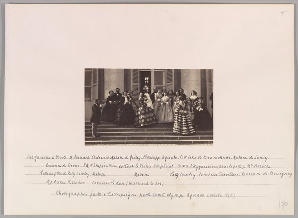 Curator: This photograph, captured by the Byron Company, documents the Brooklyn Rapid Transit Company's employee band in February 1906. Note the sepia tones, the almost theatrical arrangement. Editor: It has an undeniably staged quality, doesn't it? All those neatly aligned figures. The emphasis on symmetry is quite striking; it's balanced, stable. Curator: Indeed. This image reflects a broader social welfare movement, where companies provided recreational facilities to improve worker morale and loyalty. It's a clear instance of corporate image-making. Editor: I'd say the composition itself reinforces the idea of hierarchy and control: the conductor centered and elevated, orchestrating the entire scene. Curator: A fascinating blend of visual order and social context, wouldn't you agree? Editor: Absolutely. A controlled spectacle of industry and leisure.