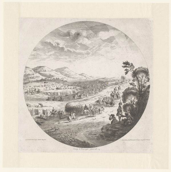 Isidore-Stanislas Helman created this print, "Emperor Qianlong Surrounded by his Troops", using etching and engraving. The image captures Qianlong, an emperor of the Qing dynasty. This artwork serves as a window into the power dynamics and cultural exchanges of the 18th century. Qianlong's reign was marked by significant territorial expansion, and also intense censorship. He commissioned the "Four Treasuries," a project to compile and preserve Chinese classics, but it was also used to identify and destroy texts deemed subversive to Qing rule. Helman's print invites us to consider the ways in which rulers seek to project images of power and legitimacy. The print also reflects the Western fascination with and interpretation of the East, during a period of increasing global interaction and colonial expansion. In this way, the image embodies the complexities of cultural encounter, power, and representation.