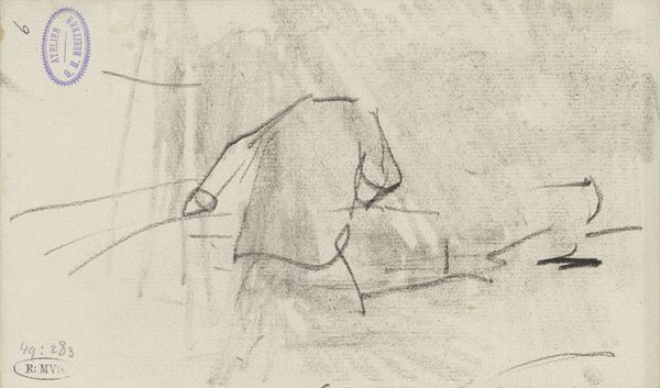 Curator: My eyes keep getting drawn to what looks like frantic motion in this work, titled "Rennende figuur, op de rug gezien" by Matthijs Maris, sometime between 1849 and 1917. It's a pencil sketch on paper housed here at the Rijksmuseum. Editor: Yes, frantic is the word! There's a restless energy about this drawing; it's so light, almost ephemeral. You feel the artist capturing a fleeting moment, maybe even chasing after it. Curator: I see echoes of Impressionism here, not only in its form but in the cultural context. It’s less about realistic representation, and more about conveying a sense of movement, a transient emotional state reflected by society at that time. The figure seems caught in a moment of social change, always running to somewhere. Editor: An interesting idea! The anonymous, faceless figure gives me pause. Consider that Maris was working during a time of massive social upheaval. Are we seeing a reflection of the individual lost in the crowd, perhaps displaced by the industrial revolution or fleeing from conflict? The "running figure" motif taps into the fears and uncertainties of the period. Curator: That reading aligns perfectly. The figure could embody anxieties about societal instability, but perhaps a figure "running away" can be symbolic with hope in that day. Running could also speak to human aspirations towards innovation, the desire to always find something new; perhaps that’s a deeply held symbol we still value. Editor: Or even deeper into the personal; perhaps this drawing isn’t a study of a figure but rather the capturing of pure movement itself? You mentioned aspiration, and yes, I like how open the running symbolism can be in a moment of such intense artistic freedom. Curator: Agreed, it’s hard to definitively pinpoint its purpose without deeper historical investigation but, even on the surface, it resonates powerfully with anxieties and dreams alike. I’m left contemplating that very tension between aspiration and unease. Editor: Absolutely. And that open-ended interpretation is precisely what makes art from this period so enduring. There is always an element of us projecting onto these images that were once also new.
