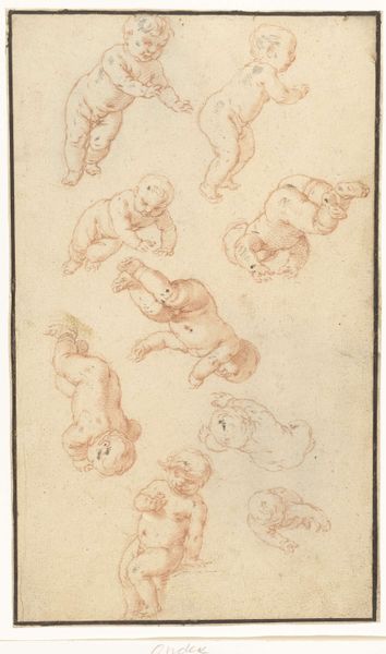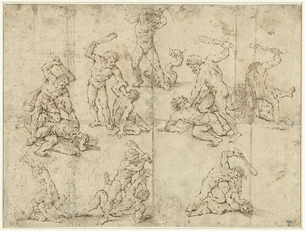 Curator: Looking at this pencil drawing titled "Studieblad met geiten en schapen" – or "Study Sheet with Goats and Sheep" – dating from the late 18th to early 19th century and attributed to Hendrik Stokvisch, what captures your immediate attention? Editor: It evokes a pastoral calm. The soft lines and muted tones create a serene, almost dreamlike atmosphere, like a half-remembered scene from childhood. But I'm struck by the variety; he’s not just mindlessly copying but really trying to understand the anatomy of each animal. Curator: Precisely! The “study sheet” format allows us to see the artist’s process. The repetition of motifs – goats and sheep in various poses – highlights the practice of close observation. It echoes the broader 18th-century fascination with the natural world. We see these "study sheets" also coming out of the academies as exemplary. Editor: Absolutely. Beyond the immediate observation, the drawing connects to deeply rooted archetypes. Sheep and goats have carried heavy symbolic loads throughout Western history – sacrifice, innocence, fertility, even stubbornness and the scapegoat archetype, if you consider the negative connotations of "goat". Curator: Right. Consider the historical context. The rise of agrarianism and landscape painting celebrated the virtues of rural life. Sheep in particular symbolized wealth and prosperity for the land-owning class. This could well be part of that idealized vision. It certainly speaks to the romantic idea of the simple life that underpinned the late 18th century. Editor: So it's not just livestock but a statement about society and values. It reveals a certain level of reverence toward the domestic animals in the image. Each placement gives them individual merit, not solely a reference to their utility. The act of sketching itself elevates them, offering a dignity perhaps unacknowledged at the time. Curator: Exactly! The image, beyond a simple study of form, acts as a window into the values of its time – reverence for nature, the celebration of agrarian ideals, and the artistic process of learning through close observation. Editor: A seemingly simple sketch becomes, under closer examination, a mirror reflecting the complex relationship between art, nature, and societal values.