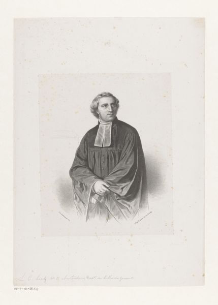 Curator: Oh, he has seen things, hasn't he? There's a deep melancholy in those eyes... Editor: Indeed. What we have here is a pencil drawing dating back to 1841, currently held in the Rijksmuseum collection. It's entitled "Portret van Sibrandus Stratingh", and the artist who created this sensitive likeness was Carl Cristiaan Fuchs. Curator: Sensitive is the word. You know, sometimes I look at these old portraits, and I swear I can feel the weight of their lives bearing down. It's not just observation; it's almost a... channeling, of a past presence. It’s quite powerful in this work. Editor: Well, part of that emotional impact arises, of course, from the carefully modulated chiaroscuro. Notice how the subtle gradations of shading—from the deep, velvety blacks of his coat to the almost luminous highlights on his face—define form and contribute to the overall mood of gravitas. The medium enhances that sense, given the potential for precision. Curator: Exactly. And look at the tiny little details around his face – see how the eyes look like they are brimming with humanity, it just sucks me in! Did he have secrets? Regrets? I want to know them all! I'm making this up in my head; it’s fascinating... Editor: The meticulous rendering and focus on capturing details aligns with academic realism, the style of the time. The subject’s gaze meets ours directly, establishing an immediate and undeniable link with the viewer. Also note, there's a compositional focus achieved via circular placement; that enhances both depth and feeling. Curator: It’s strange to think, isn’t it, that this man, Sibrandus Stratingh, probably had no idea that his face would one day be contemplated by strangers hundreds of years later! The simple pencil somehow connects our souls. Editor: The piece allows a discourse on enduring historical legacies mediated through artistic production. I'd agree it stands as a study in form, a portal to something human, and is, overall, remarkably compelling. Curator: Absolutely! Editor: I agree completely! Thank you.