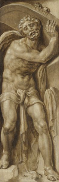 Curator: Standing before us, we have Guido Reni's "David," an oil painting dating back to about 1620. It’s currently held at the Kunsthistorisches Museum in Vienna. What’s your immediate sense of this piece? Editor: An immediate melancholy. It’s beautiful, but also…heavy. His gaze is directed just off the frame, full of world-weariness, like he already knows how the story ends, perhaps? Curator: That’s a poignant reading. I think the darkness of the Baroque style plays a huge role, as it heightens the emotional intensity. Reni was deeply influenced by the ideal of beauty. The smoothness and grace are a striking demonstration. Editor: Absolutely. You can really see it in the delicate rendering of his skin, and in the flow of light across the planes of his face, too. This isn’t just David the warrior, the triumphant slayer of Goliath; Reni gives us David the thoughtful young man, burdened perhaps by prophecy or just the gravity of his actions. I imagine the clouds, darkness, could also represent divine burdens. Curator: Very interesting! Considering David’s story is usually depicted with symbols of victory or strength, the iconographical reading of "divine burdens" provides a wonderful contrast here, it truly offers a deep view of an inner emotional life. Editor: Right! Even without Goliath’s head as a trophy, we know the story and what he represents as the coming Messiah. Curator: Well, Reni gives us a complex, sensitive portrait of this significant Biblical figure. What began as melancholy, became insightful reflection, even if that emotion doesn’t equate to sadness, exactly. More like, acknowledgement? Editor: Perhaps more like, humanity. Here’s David, in the midst of fulfilling an immortal calling and also a young man just trying to make sense of it all.