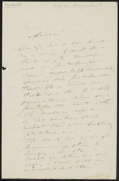 This handwritten letter was penned by Albert Verwey in Amsterdam, dating back to October 1885. But what can a simple letter tell us about the art world of the time? Letters like these are vital windows into the artistic networks of the late 19th century. Verwey, a poet and critic, corresponded with Jan Veth, an artist and fellow critic, revealing the intertwined roles within the Dutch art scene. We see not just individual creativity, but a community shaping aesthetic tastes and artistic careers. The references within – to exhibitions and mutual acquaintances – hint at the social dynamics that influenced artistic production. To truly understand this letter, we need to delve into the archives: explore exhibition catalogues, artists' biographies, and other correspondence. Only then can we appreciate how this seemingly personal note illuminates the broader social and institutional context of art in the Netherlands.