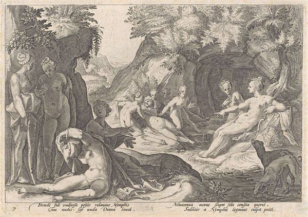 Andries Lens created this etching, "Bathing Diana and Silenus," referencing a painting by Jacob Jordaens, at an unknown date. Lens, working in the late 18th and early 19th centuries, operated in a world steeped in both classical mythology and burgeoning Enlightenment ideals. Here, we see Diana, the goddess of the hunt and the moon, surrounded by nymphs, encountering Silenus, a companion and tutor to Dionysus, known for his wisdom and revelry. What strikes me is the negotiation of gazes and power. Diana, a symbol of female independence, is placed in a vulnerable position, caught in a moment of leisure by the male gaze of Silenus and his satyrs. Lens seems to be wrestling with the traditional representations of women in classical scenes, and perhaps subtly critiquing them through the knowing looks of some of the nymphs. The composition invites us to consider the dynamics of observation, and how identity is shaped not only by self-representation, but also by the perspectives of others. This scene becomes an allegory for the negotiation of power and the complexities of representing the female form within a historical and cultural context.