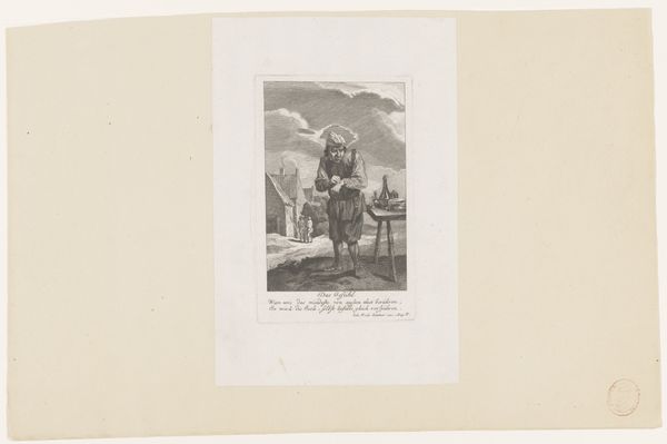 Curator: Here we have Emmanuel Jean de Ghendt's engraving, "Méricerte bezocht door haar jonge aanbidder Myrtil," made between 1811 and 1813. It’s currently held in the Rijksmuseum collection. Editor: My initial reaction is that it feels like a tableau vivant, almost staged. The stark contrast between light and shadow really highlights the dramatic interaction. Curator: De Ghendt, as an engraver, was fundamentally a manufacturer of images, often based on designs of others. It is interesting how this print, a multiple, reflects a desire for mass dissemination of idealized classical scenes. Look at the details in the line work, creating texture. Editor: Absolutely. The sharp lines really give the figures definition and an almost statuesque quality that aligns with the neoclassicism apparent here, despite some hints of Romanticism. It makes me wonder how the availability of such prints affected perceptions of power and representation during the 19th century. This image also echoes patriarchal themes about young male lovers at the service of a woman, as shown in mythology or, less charitably, a transaction. Curator: The labor involved in creating an engraving is considerable. It is not just the design but the execution, cutting into the metal, creating something meant to be reproducible and circulated widely to different audiences. This artwork sits at the nexus of craft, industry, and visual culture of that era. Editor: Exactly, and the circulation is key. Prints like these brought narratives from antiquity into contemporary social and political debates. Whose stories were being told and how, speaks volumes about social mores of that period. Curator: Looking closely at the materiality and mode of production contextualizes these mythological themes within an era where visual information circulated through these kinds of printed images. It raises questions of who has access to such stories, and in turn who gets to interpret them. Editor: Well, considering its historical context, I would argue this print offered a visual framework for power relationships, framing desire through idealized classicism. Food for thought about representations we still contend with. Curator: It's precisely this intersection of material making, and accessible narratives that reveals so much about art and culture in the 19th century. Editor: Agreed; through that lens, we can ask better questions about historical consumption and interpretations.