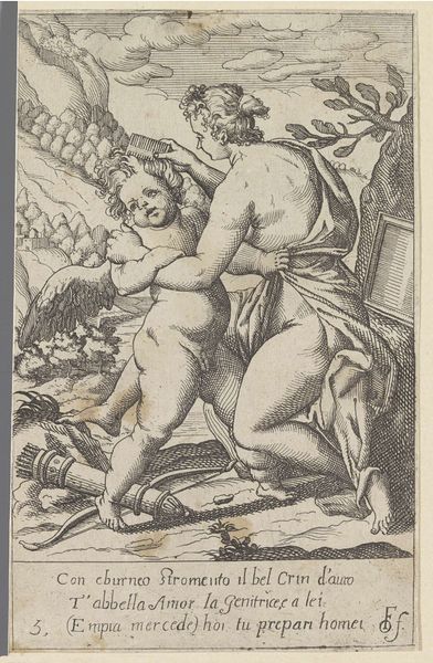Odoardo Fialetti made this etching, Venus combing Cupid's hair, in the early 17th century. The intimate scene departs from more common depictions of Venus, goddess of love, and her son Cupid. The setting is not the court of Olympus but a natural, perhaps domestic space. Prints like these circulated widely in Europe at the time, and while ostensibly about mythological figures, they reflect shifting social norms. The rise of humanist thought and the renaissance of classical art were well established in Venice, where Fialetti was working, but so too was the Catholic Church. The push and pull between secular ideals and religious doctrine shaped the culture of the period. The loving, maternal presentation of Venus, combined with the erotic charge of the nude figures, speaks to this tension. Art historians consult a range of resources to better understand works like this, including period literature, fashion, and other visual art. Contextualizing art within its own time helps reveal its significance.