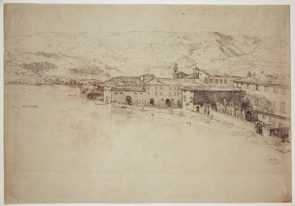 Curator: Alright, let's talk about Ludwig Metz's "Capri," dating back to 1852. It's currently held here at the Städel Museum. A rather evocative pencil drawing, wouldn't you agree? Editor: Evocative, yes, but also fleeting, ephemeral even. There’s a hazy quality to it. The pale ground of the paper enhances the sense that we're glimpsing something delicate, a whisper of a memory rather than a solid, built reality. Curator: Precisely! Notice how the composition leads the eye from the soft vegetation at the foreground up towards the architectural forms stacked against the rising landscape behind. There’s an implicit spatial dialogue happening between these planes, and the architecture which punctuates the drawing in clear visual statements that seem to dissolve as it ascends the hill. Editor: Interesting. To me, it’s about light and shadow, more so than planes. See how Metz uses varied pencil pressure to suggest texture and depth? The way he models form without fully enclosing shapes speaks volumes about a Romantic artist trying to grapple with Neoclassical principles. Curator: A very acute observation. The contrast he creates invites introspection. The architecture seems less about permanence, or solid volumes. Instead they seem temporary, human interventions balanced atop the seemingly indifferent natural world, a common theme amongst landscape artists. The buildings aren’t just depicted; they are implicated within the broader terrain, which may lend to the sensation that he did not spend much time setting up to capture what may have taken little to disappear. Editor: Yes, precisely! Think of it like visual shorthand, where certain compositional arrangements such as this diagonal accent from foreground up through buildings behind communicate the passage of time or a subtle shift in perspective. A fleeting encounter rendered in an objective, documentary style? The interplay of nature and architecture is always loaded with meanings, intentions, history, progress... Curator: A narrative beyond the picturesque facade. A lovely encapsulation. I was taken with the seemingly unfinished quality of the foreground compared to the careful work higher up, something I found interesting about Metz's approach. Editor: Agreed! So much to absorb... "Capri" speaks volumes through simple marks. It serves as an experience of transience captured within landscape.