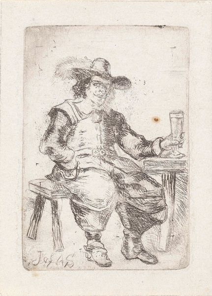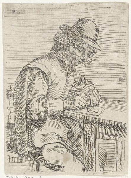 Aert Schouman made this etching of a man with a pipe in the 18th-century Netherlands. It is an intimate portrayal of a man from everyday life. The etching technique allowed Schouman to create detailed lines and textures, adding depth to the figure's face, clothing, and the objects around him. What might this level of detail tell us about the image's potential audience? Was this a common sight, a wealthy man relaxing with his pipe? Or was it something more exotic, something the art-buying public would pay to see? We can only speculate without more information. To learn more, one could look at period inventories and auction records to learn about the work's early provenance, or explore period publications to discover the cultural meanings associated with pipe smoking at the time. By looking at the historical context, we can understand the role this image played in the social and artistic norms of its time.