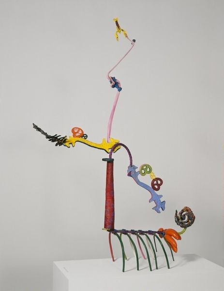 Eckart Hahn created this 'Japanischer Garten' using, among other materials, synthetic resin and pigment. Isn't it funny how the smooth, sleek surfaces are almost jarring against the organic shapes they mimic? The tree trunk is this crinkled gold, like foil wrap clinging to the form. Look how the blue paint oozes, contrasting the gold, with this hyper-real, almost cartoonish aesthetic. It’s as though Hahn is poking fun at the very idea of a serene Japanese garden. The whole thing becomes a playful deconstruction of the natural world. The tree is a little broken, a little bit sad. I’m reminded of David Hockney's vibrant, almost theatrical, landscapes. But where Hockney embraces flatness, Hahn revels in texture. Both play with artifice, reminding us that art is never a pure representation, but always a construction.