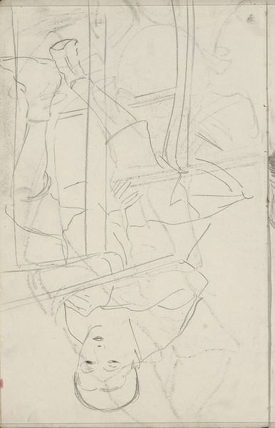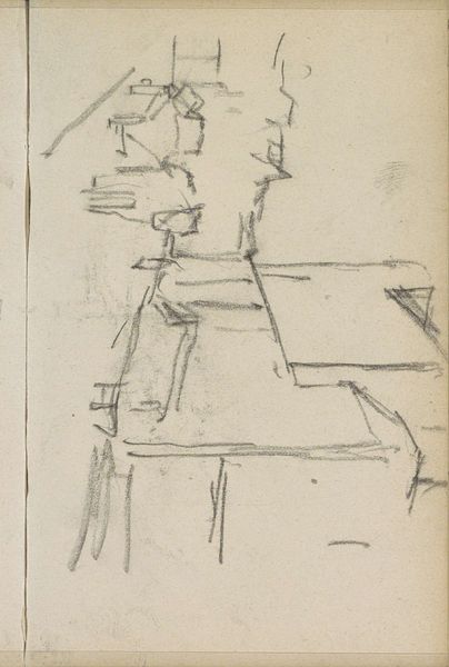 Editor: This sketch, "Rijtuig, mogelijk op de Dam in Amsterdam," made by George Hendrik Breitner between 1900 and 1923, is a quick pencil drawing, currently residing at the Rijksmuseum. It feels...fleeting. Like a memory half-grasped. What do you see in this piece? Curator: A ghost in the machine, perhaps? Breitner, ever the flâneur, captured the raw energy of Amsterdam. But there’s a vulnerability here too. Notice the frenetic lines? Like trying to hold onto a feeling just as it slips away. Think of it: turn-of-the-century Amsterdam, modernity roaring in. Editor: Yes! The speed! The city changing so fast, it's hard to hold still long enough to really *see* it. Is that why he used such quick, gestural lines? Curator: Precisely. Breitner was obsessed with capturing that fleeting moment, much like the Impressionists, but with a distinctly Dutch, gritty realism. He wasn't interested in romanticising; he wanted the real pulse, even if it was a little blurry. Do you see how the carriage, that symbol of bourgeois stability, is rendered almost abstractly? It's dissolving. Editor: It really is! I didn't pick that up at first glance. Now it seems to signify the transformation happening at the time. A push and pull between the traditional and modern. Curator: Wonderful! And consider the grey scale. There’s almost a melancholy, right? A city steeped in history, now hurtling toward an uncertain future. Maybe a reflection of personal sentiment. You feel it in the city air. A shared emotional landscape, wouldn't you say? Editor: Absolutely. Now it feels so much more complex than just a sketch. Curator: That is the magic in observing, isn't it? How one man with a pencil on paper and how seeing what it makes *you* feel changes everything.