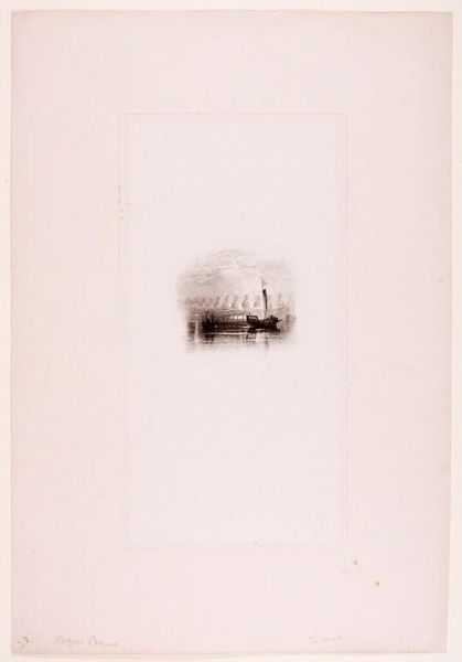 Curator: This is "Abbotsford" by Henry Le Keux. A somewhat moody, small print. What do you see? Editor: A castle emerging from the mists, like a half-remembered dream. Very romantic, bordering on melancholic, with a hint of gothic darkness. Curator: The architectural rendering, if you look closely, is quite precise, almost scientific. Le Keux was a skilled architectural engraver. Editor: Ah, yes, the formal lines trying to contain that swirling emotion. It's a fascinating tension. Curator: The setting, Abbotsford House, was built by Sir Walter Scott and held considerable cultural importance in the 19th century. Editor: So the image becomes a relic, a memory of a memory. Interesting. I'm drawn to the contrast between detail and vagueness. Curator: A fitting depiction of a place steeped in history and imagination. Editor: Indeed. It gives me a sense of time slipping away.