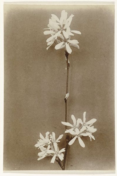 Editor: Here we have "Tak van een gladiool", or "Branch of a Gladiolus," a photograph taken by Richard Tepe sometime between 1900 and 1930. It's currently held in the Rijksmuseum collection. The tones are soft and muted; it has an almost dreamlike quality. What do you see in this piece? Curator: What I find fascinating is the conscious aesthetic choice made by Tepe during this period. Photography, in its early stages, was often striving to mimic painting, seeking legitimacy as an art form. Tepe, by embracing impressionistic styles, taps into a broader cultural fascination with naturalism, yet through the lens of artistic manipulation. The gladiolus, a symbol of strength, is softened, domesticated. Why do you think he chose this subject? Editor: Well, flowers were often used decoratively. Perhaps he was commenting on the changing role of women or domesticity in the early 20th century? Curator: Precisely. The choice of the gladiolus isn’t accidental. During the early 20th century, floral imagery was increasingly politicized, employed both to reinforce and subvert conventional gender roles. Consider how it may have been displayed – a print for the home, offering a "civilizing" influence. Think about how institutions like the Rijksmuseum today continue this dialogue. Do we reinforce, challenge, or merely present the past? Editor: That's a really interesting point. I hadn't considered the context of display and how it shapes our interpretation. Curator: Exactly! By viewing art through a historical lens, we realize it isn’t isolated, but an ongoing conversation reflecting broader societal trends and institutional frameworks. Editor: This makes me see botanical photography of the time as something more dynamic than simply pretty images of plants. Thanks for that new perspective! Curator: Indeed. Keep in mind the photograph's journey, from Tepe’s darkroom to the museum wall. That pathway reveals much about the artwork itself.