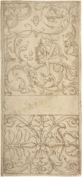Curator: We’re looking at Lucas Kilian's "Alphabet," created around 1627. It's an engraving, so a print made by incising lines into a metal plate. The Art Institute of Chicago holds this impression. What’s your first take? Editor: There is something quite aggressive in its composition! Despite the ornate embellishments and detailed line work, my attention is instantly drawn to a depiction of children. Curator: Specifically, one child seems to be receiving a spanking, while another practices the very letters forming the composition. The use of figuration does speak volumes about the culture of that period, doesn’t it? Editor: Absolutely. Notice how the large letter form provides both physical and conceptual framework. The elaborate swirls almost entrap these tiny figures within the learning process. It looks far from a gentle encouragement; I imagine these children being put into labor as makers of signs themselves, of the literal word! Curator: Exactly. Consider the implications of this "Alphabet" print—an artisanal production aimed at disseminating and celebrating literate culture among a rising literate and moneyed class in the cities. The choice of materials, the painstaking technique of engraving...these all speak to labor and consumption intertwined. Editor: The act of one child whipping the other could also carry psychological implications related to the pain often connected with childhood education and instruction. The imagery is more complex than simple decoration. And even this letter 'W' itself takes on an imposing authority within that framework. It is both an image, and an element for creating all other images through the labor and practice of learning to read and write! Curator: An interesting observation. So we are faced here with the cultural memory and emotional investment projected on these images through pedagogical practice. We see an explicit relation between artistic processes of creation, their social use, and the production of labor. I believe our viewers now have greater food for thought regarding this historical 'W'. Editor: It provides rich cultural insights that resonate even today. I am left pondering the deeper meanings embedded within, like the relationship of learning to bodily pain and fear... Curator: It encourages me to reconsider how craft practices in art intersect and shape education and our society more broadly. Thank you!