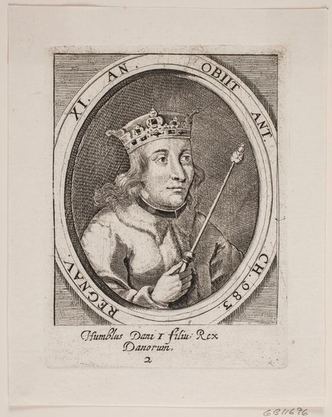 This is Sébastien Pinssio’s ‘Portret van Karel VII,’ a small engraving on paper. Pinssio was active in the mid-18th century, a period marked by the Enlightenment’s focus on reason and order, yet still clinging to representations of power and authority. This portrait, encased in an oval frame, presents Charles VII, a 15th-century French monarch. What does it mean to revisit and re-present a figure of absolute power during a time of burgeoning revolutionary thought? The King is depicted in profile wearing a crown. This perspective emphasizes the immutable nature of his authority, a silent but potent declaration of dynastic legitimacy. Note how the print is not just an image but a statement. The choice of portraying Charles VII, a king who ruled centuries prior, suggests a longing for historical continuity amidst the changing social and political landscape of 18th-century France. It invites us to consider how representations of power evolve, adapt, and persist through different eras.