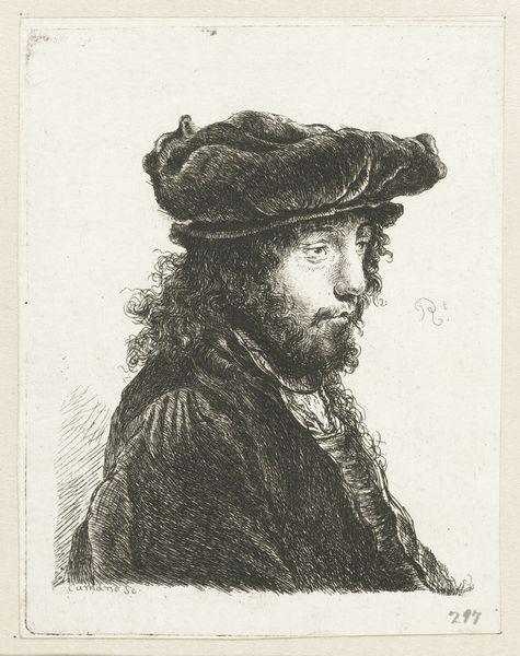 Curator: What a severe looking fellow! All those meticulous lines give him a serious gravitas, don't you think? Like he's pondering the weight of the world. Editor: That's an interesting observation. This engraving is by Lucas Cranach the Younger. It's entitled "Portrait of Johann Georg Viberg" and scholars believe it was likely completed sometime between 1515 and 1586. It is now housed at the Metropolitan Museum of Art. Curator: Ah, Cranach the Younger! You know, I feel like there's something deeply honest in the direct gaze. His eyes seem to bore right into you. It’s Northern Renaissance seriousness at its finest. Plus that teeny triangle in his hand is so odd, I’d love to know what that is all about. Editor: It is fascinating how these portraits serve as more than just depictions, becoming coded messages about the sitter’s status, beliefs, or profession. The subject of this engraving, Johann Georg Viberg, might have commissioned this to promote a certain image, particularly during the turbulent times of the Reformation. He probably sought to demonstrate that he was both pious and steadfast, what with that solid gaze and perhaps the triangular symbol as some sort of symbolic statement. Curator: Maybe a stonemason, or just a geometry lover? Ha! It tickles me to think about him meticulously posing with his little triangle, carefully directing the angle. I picture the scene playing out like that Monty Python sketch where they were trying to take Rembrandt’s photo. Editor: Perhaps. Consider how prints also democratized imagery. Once these portraits would have been reserved for the wealthy. Now they could be circulated more widely to shape and reinforce power dynamics of the period. Curator: Even now I find it incredible that this piece has journeyed over centuries for me to gaze at, wonder about, and be inspired by. Makes you feel like a link in an amazing unbroken chain, doesn’t it? Editor: Absolutely. It's in moments like these that the museum transforms into a crossroads of history. A meeting place for understanding our human experience and culture and how images can play into that understanding.