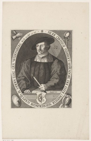 This is Hendrick Goltzius’s “Portret van Adriaan van Westcapelle,” an engraving likely made in the late 16th century in the Netherlands. The image presents a man of some status, judging by his elaborate ruff and fashionable hat, encircled by an inscription naming him and stating his age. Prints like this one played a crucial role in shaping social status during this period. Goltzius was a leading figure in Haarlem, a city experiencing rapid economic growth through trade and textile production. Here we see the values of a newly powerful merchant class. The print flattens the sitter into a two-dimensional likeness, an abstract image of status that could be easily reproduced and disseminated. To understand this work better, we might research the social hierarchy of Haarlem at the time, and the role of portraiture in constructing identity. The print is a fascinating historical document, reflecting the social and economic conditions of its time.