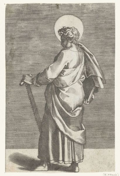 This print, "Wounded Man with a Sword," was created by Jan Thomas sometime in the 17th century. It's an etching, a printmaking technique that relies on the corrosive properties of acid to create an image in metal. The artist would have covered a metal plate with a waxy, protective layer, then scratched an image into that layer, exposing the metal beneath. When the plate was bathed in acid, the exposed lines would be eaten away, creating grooves. Ink would then be applied to these grooves, and the image transferred to paper under high pressure. The resulting image has a distinctive line quality. It’s an indirect process, and there's a clear separation of labor between the artist, the materials, and the tools. But it’s precisely this process of controlled corrosion that gives the print its character, a tangible record of skill and technique. We should remember that making prints like this was a crucial means of circulating images at the time, and a business in itself.