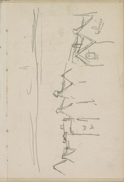 This graphite drawing of a resting horse with a feedbag was made by George Hendrik Breitner in the Netherlands. Breitner was known for his depictions of working-class life in Amsterdam, and this drawing offers a glimpse into the daily lives of animals who worked alongside people in the late 19th and early 20th centuries. The sketch-like quality and the mundane subject matter reflect a broader shift in artistic taste toward the everyday, capturing fleeting moments of modern life. Breitner, like many artists of his time, was interested in representing the gritty realities of urban existence, as opposed to idealized or historical scenes. To fully appreciate Breitner's work, it’s useful to consider the social and economic conditions of the Netherlands at the time and also the institutional art world. Archival sources, such as exhibition catalogs and period reviews, can provide valuable context. These help us see how artists like Breitner challenged traditional artistic norms by bringing attention to previously overlooked aspects of social reality.