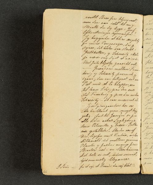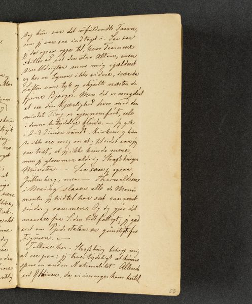 This is a page from Johan Thomas Lundbye's travel journal, likely created during his travels in the 1840s. Lundbye, a Danish Golden Age painter, used his journals not only to record his observations, but also to express his innermost thoughts and feelings. In this particular entry, we see Lundbye grappling with the complexities of identity and belonging. The text hints at his encounters with different cultures and perhaps feelings of alienation as he moves through foreign lands. His reflections on language, "set Franske og senere old Italimoke?" suggest a broader contemplation about cultural heritage, and how language shapes perception and experience. Consider that Lundbye wrote during a period of intense national romanticism. His personal quest to understand his place in the world resonates with broader societal questions about national identity. There's a delicate balance between the desire to connect with others and the struggle to maintain a sense of self. The journal isn't just a travelogue; it's a deeply personal exploration of the self in relation to the world.
