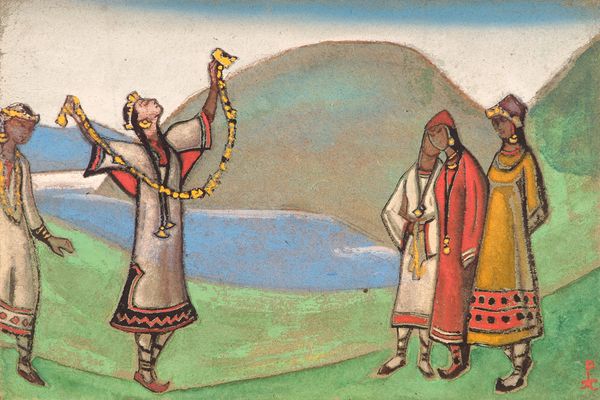 Nicholas Roerich gave us "Young Men," and what strikes me is its dreamy quality, like a half-remembered folk tale. The colors feel muted, chalky almost, which lends the painting a timeless quality. Looking closely, the paint application is really interesting. See how the landscape is rendered with these broad, almost careless strokes, while the figures have sharper outlines? It's as if the figures are caught in a moment, while the landscape around them is more fluid. The archer, with his bow drawn, has this incredible tension, but it's also soft, like a memory. Roerich reminds me of Marsden Hartley, in the way that both artists had a deep interest in mysticism. It is a really powerful suggestion of how art can be a vessel for the unseen. "Young Men" feels like a question, a whispered story, rather than a declarative statement.