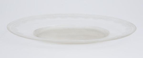 Curator: Here we have a "Saucer", its maker is unknown. It resides here at the Harvard Art Museums and its dimensions are 1.6 by 10.8 centimeters. Editor: It feels so… empty. Like a minimalist void. A blank canvas for spills. Curator: Saucers, you see, often stand in for domesticity and routine. The implied presence of a cup, the ritual of tea or coffee. It speaks to civilization and comfort. Editor: Or perhaps, the absence of it. What does an empty saucer tell us? A symbol for something yet to come, maybe? Curator: Indeed, the emptiness could point to longing, waiting. Or it could be a meditative symbol, a sign of calm simplicity. Editor: It makes me reflect on the mundane objects around us that hold so much latent meaning. It's strange. Curator: These silent witnesses that silently shape our lives. Thank you for your wonderful reflections. Editor: My pleasure!