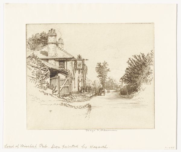 Bruno van Straaten created this watercolor artwork of old houses on a city wall, measuring 275 by 383 millimeters. It presents a tableau where architecture and nature coalesce in subtle harmony. The artist employs a delicate wash technique, allowing the paper's texture to interact with the pigment, resulting in a surface that feels both ethereal and grounded. Note how the structural elements—houses and city walls—are softened by the organic forms of trees, suggesting a cyclical return to nature, a theme prevalent in Romantic-era landscape art. The composition’s recessive depth plays with spatial perception, inviting the viewer into a contemplative experience, one where fixed meanings dissolve. The interplay of light and shadow enlivens the static structures, adding a temporal dimension. Ultimately, it is this quiet formal tension that enables Van Straaten to challenge and redefine conventional landscape aesthetics.