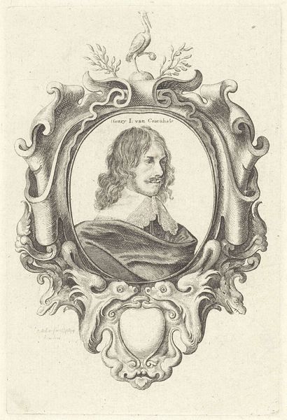 Editor: Here we have Robert Nanteuil's "Cardinal Barberini," housed in the Harvard Art Museums. It’s quite striking how the oval frame contrasts with the angular lines of the Cardinal's features. What catches your eye in this portrait? Curator: The technical virtuosity of Nanteuil's engraving is paramount. Observe how the density and directionality of the lines modulate to create tonal variation, defining form and texture without relying on color. The composition is structured through the interplay of light and shadow, creating depth within the oval frame. Editor: So, it's less about who Cardinal Barberini was and more about how Nanteuil depicted him? Curator: Precisely. The essence of the work lies in Nanteuil's masterful manipulation of line and form to create a compelling visual experience. The portrait transcends mere representation, becoming a study in the aesthetics of engraving. Editor: I never thought about it that way. Thanks for opening my eyes to a new way to appreciate this artwork! Curator: My pleasure. The beauty of art lies in its ability to evoke diverse interpretations.