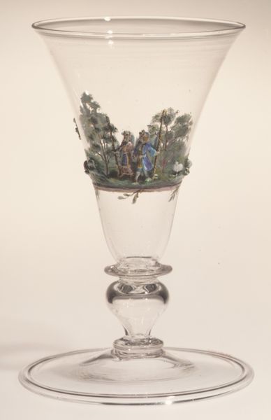 Alexander Vershinin created this glass beaker with enamel paint in the early 19th century during a time of significant social stratification in Russia. Vershinin, who was likely positioned within the crafts-based class structure, produced decorative objects for wealthier patrons. This small glass tells a story of class and leisure. A dog chases a rabbit through an idyllic landscape, complete with a dacha and hut. Hunting was a popular pastime among the aristocracy, symbolizing their dominance over nature and the rural population. The dacha, a seasonal or suburban home, represents a lifestyle of privilege, far removed from the harsh realities faced by the serfs who worked the land. While seemingly a simple decorative object, this beaker encapsulates the deep social divisions of 19th-century Russia, reflecting both the aspirations and the disconnect of its elite. It serves as a reminder of how art can function to both perpetuate and subtly comment on the prevailing power structures.
