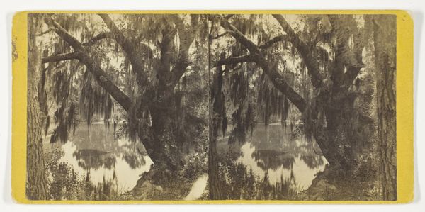Editor: This photograph by George Barker, taken in 1886, shows a stern-wheeler arriving at Silver Springs, Florida. It's a beautiful, almost ethereal scene, with the steam from the boat blurring into the hazy background. What draws your eye when you look at this piece? Curator: Immediately, I'm struck by the symbolic interplay between the man-made and the natural world. The steamboat, a symbol of progress and human ingenuity, is juxtaposed against the primeval, almost mystical quality of the Florida landscape. Editor: Mystical in what way? Curator: Consider the Spanish moss draped on the trees, the still water reflecting the light... it evokes a sense of timelessness and ancient history. And the Native Americans and early European settlers' encounters are wrapped in that river. Do you think the figures in the foreground appear dwarfed by their surroundings? Editor: They do. It's as if the landscape itself is the main character, and the people are just temporary visitors. Curator: Precisely! This image captures a moment of transition. The steamboat is intruding upon a wild and relatively untouched place, forever changing it. Note too the repetition of the figure--as reflection, as memory--across the river. What do you suppose the artist meant to repeat? Editor: It’s a picture of change and impact, then, on the American landscape. It makes you wonder what this place looks like now. Curator: Indeed. It reminds us that even seemingly immutable natural wonders are vulnerable to the relentless march of time and human intervention. Editor: I hadn’t thought of it that way. This image holds much more complexity than I first perceived. Thank you for sharing.