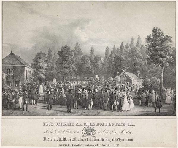 Jean-Baptiste Madou created this print in 1828, capturing a music festival in Antwerp. The central motif is the gathering itself: a crowd of people coming together in harmony. This symbol of collective unity has deep roots, echoing ancient rituals and festivals where communities would unite through music and dance. Think back to the Dionysian festivals of ancient Greece, where ecstatic gatherings celebrated the god of wine and theatre. In this image, the orderly arrangement of the crowd and the structured setting suggest a more controlled expression of communal joy. However, the underlying impulse remains the same: the human desire to connect with others through shared experience. The very act of gathering holds a potent psychological charge. As humans, we are drawn to crowds, seeking validation and belonging. The energy of a crowd can be both exhilarating and overwhelming, tapping into primal instincts of group identity and shared emotion. Madou's print captures this dynamic, reminding us of the enduring power of collective experience to shape our emotions and our identities.