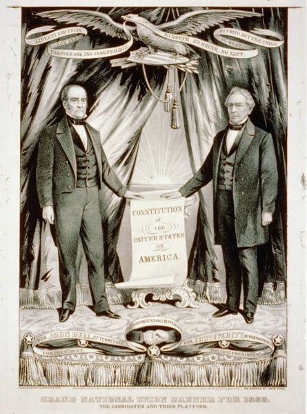This print was made by Currier and Ives, a prominent American printmaking firm, likely around 1864. It depicts Abraham Lincoln and Andrew Johnson, the Republican presidential ticket. The image creates meaning through a variety of visual codes and cultural references typical of mid-19th century America. The American flag, the eagle, and the neoclassical building evoke patriotism and national pride. The inclusion of agricultural imagery speaks to the agrarian ideals of the time. But it also represents the economic divide between the industrial North and the agricultural South, a central issue in the Civil War. The print implicitly critiques the institution of slavery by promoting a vision of "Liberty, Union, and Victory" under a Republican banner. Understanding this artwork requires research into the complex social, political, and economic conditions of Civil War-era America. We need to consider the role of print media in shaping public opinion, the debates surrounding slavery and states' rights, and the rise of the Republican Party. Only through such historical contextualization can we fully appreciate the significance of this image.