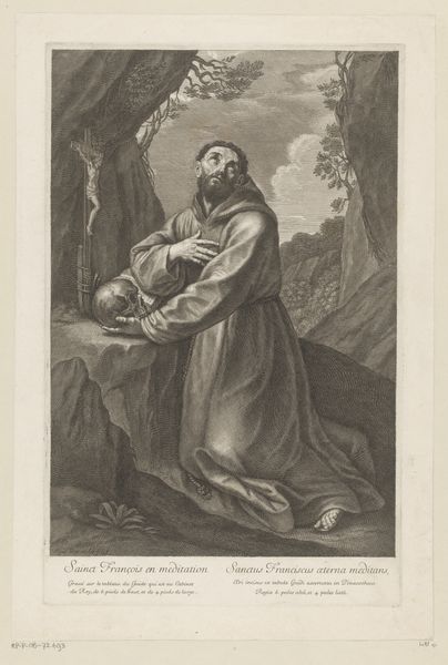 Piranesi’s "The Madonna and Child" presents us with a study in contrasts, articulated through a precise language of line and shadow. The figures are rendered with meticulous detail, highlighting the softness of the flesh against the rugged texture of the surrounding landscape. Look at how Piranesi uses dense hatching to model form and create depth, particularly in the drapery and the background elements of rock and foliage. This technique, typical of engraving, lends a tactile quality to the image, almost as if one could feel the weight and texture of the fabric and the roughness of the stone. The composition is structured to draw the eye towards the intimate embrace of mother and child, yet the surrounding wilderness introduces a sense of isolation. The choice of stark monochrome further intensifies the emotional depth. Piranesi invites us to consider the interplay between the sacred and the secular, challenging established meanings of purity and nature. As you leave, consider how the structural elements serve to create a space for reflection and interpretation, rather than providing fixed answers.