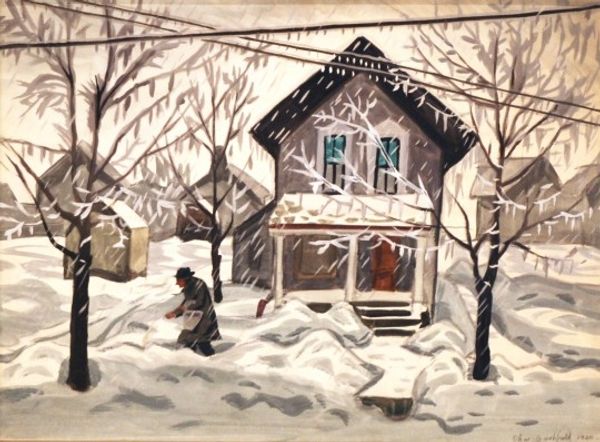 Ivan Generalic made this 'Winter' painting using oil on glass, and there's something beautifully backwards about that process. Like, here’s a scene of rural life, rendered with this super smooth, almost naive touch. The colours are muted, mostly browns, whites, and greys. The paint sits so evenly, you almost don’t see the hand of the artist. And yet, look closer. See how the snow on the roofs isn't just white, but layered, with subtle blues and greys mixed in? That’s where the painting comes alive. It's like Generalic is reminding us that even the most familiar scenes are made up of a million tiny, complex moments. I think about Pieter Bruegel the Elder, another master of the everyday. Like Breugel, Generalic helps us understand art as an ongoing conversation, embracing the beauty and ambiguity of the world.
