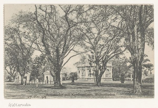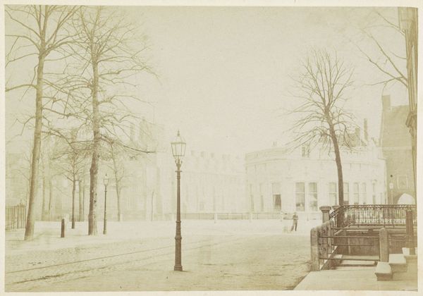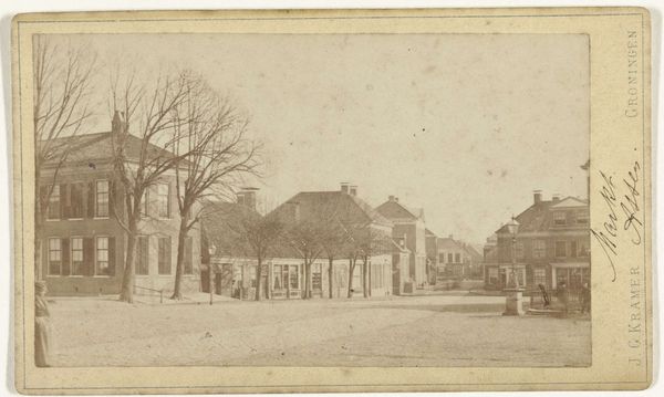 Johannes Gerardus Kramer captured this evocative scene of De Brink in Assen with a camera. The dominant visual motif is the row of bare trees lining the open space. In many cultures, trees represent life, growth, and connection between earth and sky. Think back to ancient Greece, where sacred groves were places of worship and contemplation. Similarly, in Germanic traditions, the World Tree, Yggdrasil, connected different realms of existence. Here, the trees, devoid of leaves, might also suggest a period of dormancy or reflection, a pause before renewal. Such images of barren trees echo in various artistic expressions across time. Think of Caspar David Friedrich's stark landscapes, imbued with romantic longing and contemplation of nature's power. Or even the stark branches in some of Edvard Munch's works. These images engage with our collective memory, touching on themes of mortality and the cyclical nature of life. In De Brink te Assen, the trees are a poignant symbol, resonating deeply with our shared human experiences.