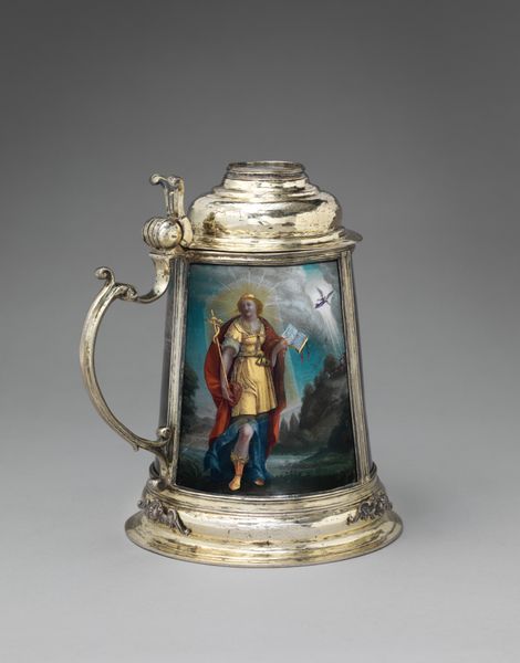 Editor: Here we have the Children's Stein Still Bank, crafted around 1930. It’s a miniature ceramic and earthenware piece. The imagery has a certain idyllic quality. What social narratives do you see reflected in this object, particularly concerning gender and childhood? Curator: This seemingly innocent object actually raises some interesting questions about the construction of childhood and gender roles in the early 20th century. Look at the imagery – a young girl presenting a flower to a knight. Who benefits when traditional power dynamics are represented this way in an object designed for children? Is it preparing them to accept those roles? Editor: That's a powerful point. It does feel like it subtly reinforces those hierarchies. The knight is presented as a figure of authority and the girl in a more submissive position. Curator: Exactly. Consider the context of the time, too. It's 1930, in the middle of significant social and economic upheaval. Perhaps these images served as a form of reassurance, a yearning for a romanticized past where everyone "knew their place," even as societal structures were actively shifting and destabilizing. But for whom was it reassuring, and at whose expense? How does it normalize class divides or colonialism via idealized medievalism? Editor: So it’s not just a cute little bank. It's reflecting, and perhaps even reinforcing, the power dynamics of its time. That gives it a completely different dimension. Curator: Precisely! And it shows us how even everyday objects can be sites of ideological negotiation and influence. Examining them with a critical eye opens up space for understanding the past and questioning the present. Editor: I hadn’t thought about it that way before. It makes me think about the toys and images that children are exposed to today. Thank you for providing the deeper historical and social layers to something so seemingly simple. Curator: My pleasure! Art objects can act as vessels of discourse on intersectionality. The Stein Bank now serves as a looking glass into these dynamics that shape individual and cultural values.