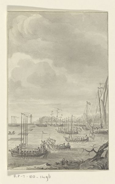 This engraving depicts the port of Rouen, a scene dominated by ships and maritime activity. The ship, laden with meaning, appears across cultures, from ancient Egyptian funerary boats to Viking longships, each carrying souls or treasures across uncertain waters. Here, they symbolize commerce and connection, but also the inherent risks of venturing into the unknown. Look at the clouds above them, a motif common in art through time to provoke an emotional response, evoking a sense of the sublime. The crown and coat of arms at the bottom recall royal power and national identity, symbols that evolve over time, shifting from divine right to emblems of state. Such symbols tap into our collective memory, stirring primal emotions linked to authority and belonging. Notice how the artist uses the symbols to engage us emotionally, prompting deep-seated psychological responses that echo through history. These cyclical motifs, resurfacing in new contexts, speak to the enduring power of symbols in shaping our understanding of the world.