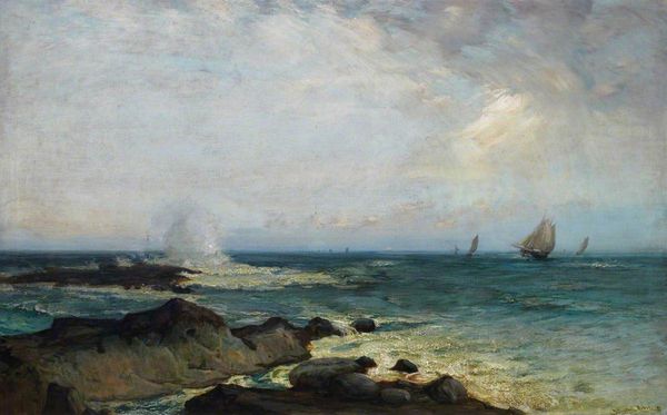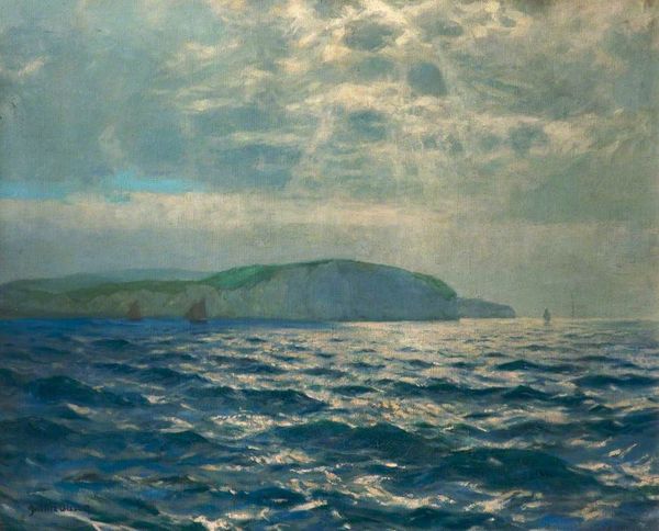 Albert Julius Olsson made this painting, 'Morning off The Needles,' in an unspecified time, probably with oil on canvas, and what strikes me is how the brushstrokes themselves seem to mimic the movement of water and light. It's all about process, isn’t it? The doing of it. Look at the way the paint is applied – thick in some areas, thin in others, almost like the water itself is breathing. The blues and whites blend together, creating a shimmering effect that’s both calming and invigorating. I’m drawn to the lower part of the painting, where the brushwork becomes almost frantic, a flurry of strokes capturing the energy of the waves. It’s like Olsson was wrestling with the sea, trying to capture its essence on canvas. This feels reminiscent of some of Turner's seascapes, that same sense of awe and the sublime, but with a more intimate, personal touch. You can almost feel the sea spray on your face. Painting is just mark making that accumulates, and in this work, the ocean is made of marks.