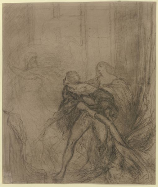 Bernhard Neher the Younger made this pencil drawing titled 'Scene from Goethe's Iphigenia in Tauris'. Neher's drawing visualizes a moment from Johann Wolfgang von Goethe's play, which was itself a modern adaptation of Euripides' ancient Greek drama. Made in Germany, at a time when the country was experiencing a period of cultural and intellectual flourishing known as the Weimar Classicism, this piece reflects the era's fascination with classical antiquity and its values. Goethe’s play critiques the idea of barbaric infanticide present in ancient Greek plays, instead presenting a story of reconciliation. Neher's drawing, like Goethe’s play, participates in the project of reinterpreting Greek drama for a modern audience, imbuing it with contemporary moral and philosophical concerns. Understanding the image requires us to consider the broader social and intellectual context in which it was created. Further research into the history of Weimar Classicism, the reception of ancient Greek drama in Germany, and the biography of Goethe, are invaluable in fully understanding this work.