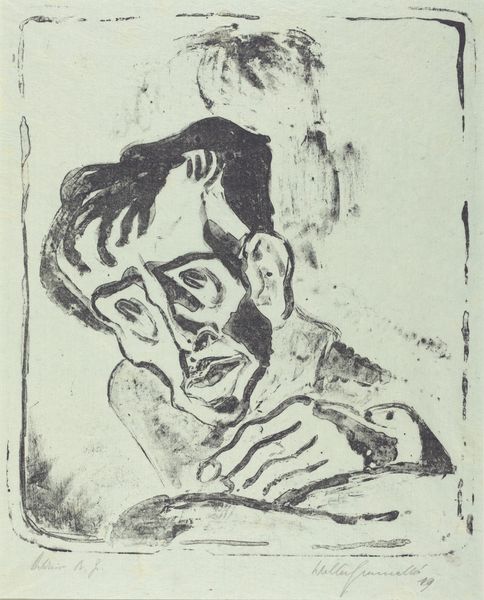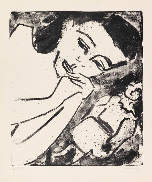 Max Pechstein created this woodcut, titled "The Convalescent," during a period marked by significant shifts in artistic expression. As part of the Expressionist movement, Pechstein and his contemporaries sought to convey raw emotion and subjective experience, often challenging traditional artistic conventions. This image offers a glimpse into the complexities of identity and the nuanced experiences of women in the early 20th century. The woman's contemplative pose and the title of the piece suggest themes of recovery and introspection, perhaps reflecting broader societal concerns about health, vulnerability, and the emotional toll of modern life. The bold lines and stark contrast of the woodcut medium enhance the emotional intensity of the image, inviting viewers to connect with the sitter's internal state. Pechstein develops a new narrative, offering a perspective on women's interior lives during a time of social and cultural transformation. It encourages reflection on the intersection of personal experience and broader societal forces.