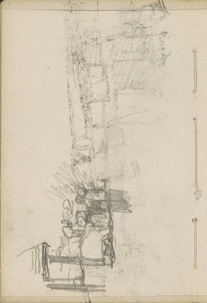 Editor: This is "Paardentrams, mogelijk op de Dam te Amsterdam" – Horse-drawn trams, possibly on Dam Square in Amsterdam – by George Hendrik Breitner, dating from around 1886 to 1903. It's a pencil drawing, and I find the sketch-like quality really interesting. It feels so immediate, capturing a moment in time. What can you tell me about its context? Curator: Indeed, it's quite a dynamic piece. Breitner was known for capturing urban life in Amsterdam. Drawings like these offer a fascinating window into the rapid industrial and social changes occurring at the time. How do you think the portrayal of transportation reflects these changes? Editor: I guess the horse-drawn trams represent a shift from older forms of transport, but they’re not quite as modern as, say, automobiles. They’re like an intermediary step. Does this "in-betweenness" connect to how the piece was received by audiences at the time? Curator: Precisely. Breitner was part of a movement of artists documenting modern life and often faced criticism for his unconventional approach. Think about the rise of photography then and its impact on art's role in society. How did that dynamic shape artistic practices like Breitner's? Was it seen as a challenge to artistic norms? Editor: I see what you mean. Maybe he was using the sketch format to show everyday life as something fleeting and real, whereas photography was just emerging as a way of freezing an image perfectly? Curator: Exactly! Now, let's think about how this drawing might have functioned publicly. In what spaces could Breitner's art be found, and how might that have influenced people's understanding of Amsterdam at the time? Editor: Interesting. I hadn't really thought about that. It’s not just about the image itself, but how it circulated and was understood in society. Thanks for putting it in that broader perspective! Curator: My pleasure. Looking at art as a product of social and institutional forces reveals so much about its enduring power.