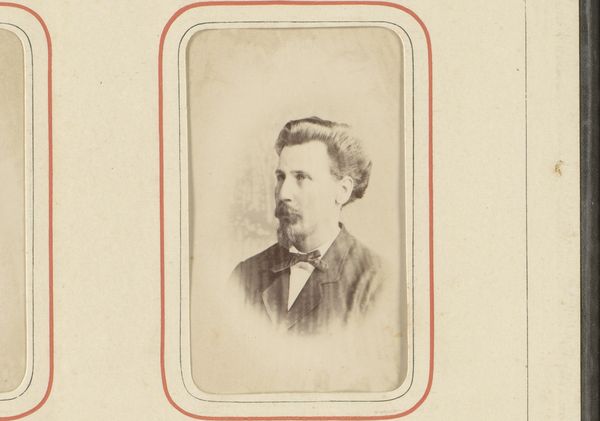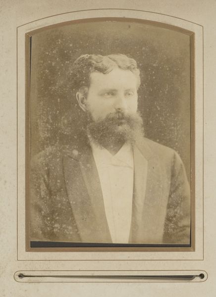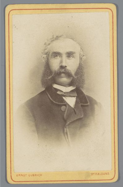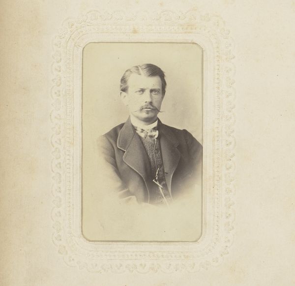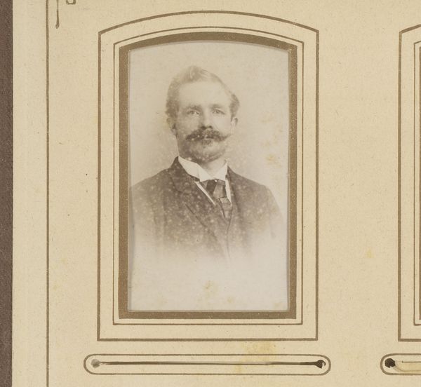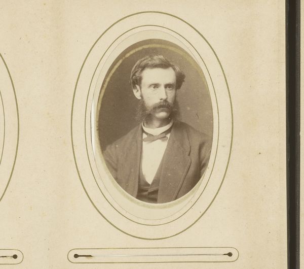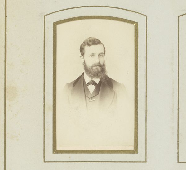 Curator: Looking at this portrait, I’m immediately struck by its almost melancholic aura. It’s like stepping back in time, but tinged with a quiet sadness. Editor: You’ve hit the nail on the head. What we see here is "Portret van een man met bakkebaarden", or Portrait of a Man with Sideburns, captured sometime between 1871 and 1900 by Hendrik Gerard Gerstenhauer Zimmerman. The artist worked with the daguerreotype, one of the earliest photographic processes, to create this beautiful, haunting portrait. Curator: Daguerreotype, wow! The level of detail, despite its age, is pretty astounding. And those sideburns really *are* something, huh? They scream "Victorian gentleman," almost to a comical degree. But then there's this stark realism. No softening, no idealizing, just… him. Editor: The sideburns are a statement, definitely marking his social standing, masculinity, and confidence. But what intrigues me are his eyes. Notice how direct and unwavering his gaze is. There’s a psychological depth that transcends the mere surface representation. It mirrors a larger societal interest in capturing “truth” during this time. Curator: Exactly! He doesn't look thrilled to be there, does he? Like he's enduring the process, rather than enjoying it. I mean, photography was probably a novelty but, I don’t know, there's this weary expression that speaks volumes. Or maybe that's just my 21st-century cynicism creeping in! Editor: Perhaps, but think about the process: lengthy exposure times, a cumbersome setup, and the knowledge that you are participating in the birth of a new technology designed to fix your image for posterity. What might that do to a person? The image then becomes less about individual sentiment and more about a cultural investment in memory-making. Curator: So, his seriousness becomes less a personal quirk, and more a reflection of the historical moment? That changes how I read him completely! Editor: Indeed! This portrait reminds us how profoundly linked the personal and the cultural truly are. Every detail, from his determined gaze to the then-cutting-edge daguerreotype, speaks volumes about that crucial time. Curator: I love how looking at something old can open up all these pathways into understanding the world we live in now. What started out as just an old portrait photograph turned out to be a fascinating exploration of culture, memory and humanity itself.