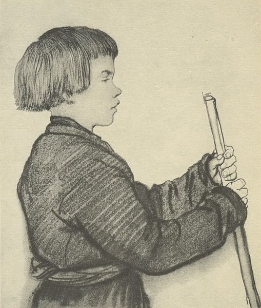 Adolph Menzel made this drawing of a boy with a water glass sometime in the 19th century, using charcoal on paper. The qualities of charcoal are essential to the work's impact. It's a material that allows for both detailed rendering and expressive mark-making. Look closely, and you will see how Menzel uses the charcoal to capture the boy's features with precision, but also employs broader, more gestural strokes to suggest form and volume. This technique emphasizes the immediacy of the drawing process. Charcoal as a medium has been used for centuries, not just for preparatory sketches but also for finished works of art. The ease with which it can be manipulated, erased, and blended makes it an ideal material for capturing fleeting moments and impressions. This drawing embodies these qualities, offering us a glimpse into a specific time and place. By focusing on the materials and the making, we can appreciate how Menzel elevates a simple study into a compelling work of art.