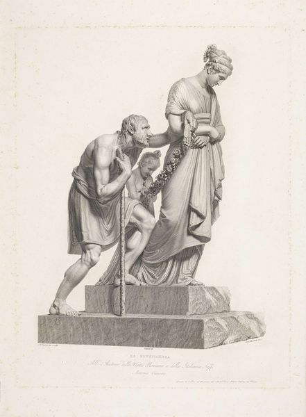 This print of ‘Amor en Psyche’ was made by Domenico Marchetti in the early 19th century, after the famous marble sculpture by Antonio Canova. The print captures Canova’s original sculpture, and its illusion of smooth, white marble. This aesthetic of idealized form, achieved through careful carving and polishing, was highly prized in the Neoclassical period. But the printmaking process has its own story to tell. Consider the skill required to translate three dimensions into two, and the labor involved in creating the matrix that would allow for the image’s reproduction. The print medium democratized artworks, making them more accessible to a wider audience. Yet it also created a distance from the hand of the artist, raising questions about authenticity and value. This prompts us to reflect on the distinctions between original and copy, and the economic forces that shape our appreciation of art. Ultimately, this print invites us to consider how materials and making processes affect our understanding of cultural value, and how social context shapes our understanding of art.