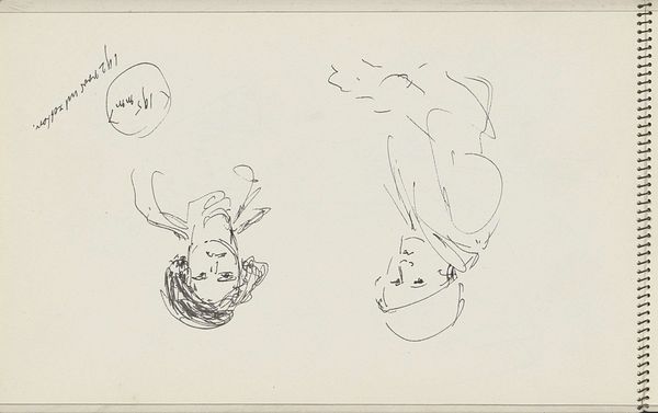 Curator: This sketch, "Three Women in Costume, Possibly Variety Dancers," comes to us from Isaac Israels. We believe it was likely composed between 1875 and 1934. It’s a pencil drawing, currently residing here at the Rijksmuseum. What catches your eye initially? Editor: Immediately, it’s the vulnerability of these figures, caught mid-pose perhaps, in these incredibly spare, suggestive lines. The tilted heads give me a sense of intimacy and maybe, dare I say, slight exhaustion? It’s charmingly unvarnished. Curator: Indeed. Considering the period, and that Israels was capturing probable performers, that 'unvarnished' feel is interesting. Pencil as the medium really emphasizes process, a sketch being less about finished product and more about working through an idea. It prompts thoughts on the production of entertainment, and what the lives of performers would entail in the context of their labor. Editor: Yes! It also has a wonderfully modern feel. Those swiftly-rendered lines, capturing a fleeting moment in the theater… It reminds me that behind the spectacle is the reality of bodies at work. Almost as if the tools of the portrait--the pencil in this instance--reveals something deeper. Curator: The choice of pencil definitely strips away artifice. There's no grand oil paint to suggest status or idealized beauty; just the immediacy of line on paper. Considering Israels likely sketched numerous dancers, there must have been a flow and availability of the tools which were themselves of relatively little inherent value compared to other painting practices. Editor: Absolutely, and that's perhaps why it breathes such fresh life and captures an authenticity of character and environment so poignantly. A painter might bring grandeur to it; Israels instead shows us real people. Curator: I find it curious how a simple medium redirects focus toward what is actually portrayed: labor, not leisured activity or the art world. It brings up a reflection of consumer culture during this period and challenges the supposed chasm between “high art” and what many consider “craft.” Editor: Precisely. It is in the understated presentation of this moment that reveals not only a world, but ourselves and how we view performance. Makes one think of who holds the pencil now…and what is *their* vantage point. Curator: Yes. In that way, "Three Women in Costume, Possibly Variety Dancers" pushes beyond portraiture and encourages considerations around making as much as being. Editor: Beautifully put!