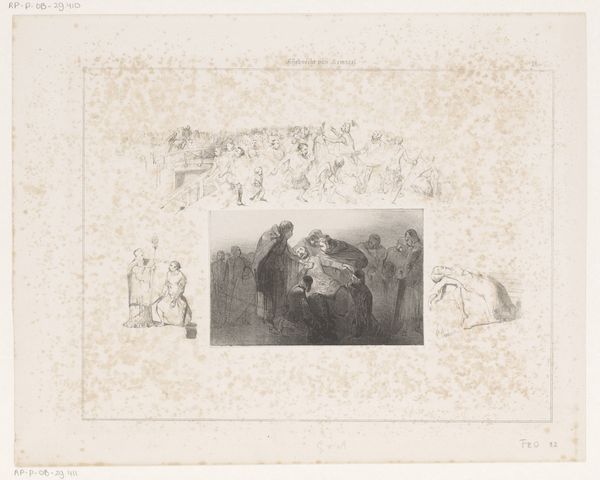 This print, titled ‘Vrouw met haar eerste kind in een bed’ (Woman with her first child in a bed), was made by the French school, by the printmaker Mayer. It presents us with a tender, yet complex scene of new motherhood. The image captures a domestic moment, a tableau of the private sphere during a time when gender roles were rigidly defined. The new mother, surrounded by attendants, is the focus of attention. The artist offers us an intimate view into the life of a woman, while also reinforcing the societal expectations placed upon her. We are drawn into the emotional landscape of this intimate gathering. What does it mean for a woman to be defined primarily by her role as a mother? What joys and burdens accompany this transformation in identity? By engaging with these questions, the print invites us to reflect on the historical and cultural constructs that shape our understanding of womanhood.