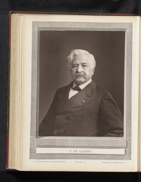 Editor: Here we have Nadar's portrait of "F. de Lesseps," a gelatin silver print from around 1876. It feels so formal and staged, quite typical of portraits from that era. What's your take on this, how do you interpret this work within its historical context? Curator: Well, considering Nadar's legacy and the subject’s prominence, this isn't just a portrait; it's a carefully constructed representation of power and progress. Ferdinand de Lesseps, the man behind the Suez Canal, was practically a symbol of French ambition. This image, circulated widely, helped solidify that image. How do you think the relatively new medium of photography played into the creation of these public figures? Editor: I guess photography offered a new level of 'realism' that painting couldn't, making these figures seem more accessible and trustworthy. Yet, it's still a very constructed image, right? Curator: Exactly! And Nadar was keenly aware of that. He uses lighting, pose, and composition to convey specific messages about his subjects. This photograph helped construct and disseminate a carefully curated image of de Lesseps at the height of his success. Did this constructed image impact future public perception of him, especially considering the later Panama Canal scandal? Editor: It’s fascinating how a single image can contribute to shaping someone’s public persona, for better or for worse. It's hard to disconnect this confident portrait from the later controversy. Curator: It underscores how art and photography, even portraits, participate in larger political narratives, reflecting and influencing public opinion. Considering the medium, is there a way in which this particular image affected Nadar's own career, or how photography itself was percieved? Editor: That's something I hadn't considered before! It all ties into this bigger web of social and political implications, far beyond just aesthetics. Thanks for the insights. Curator: Absolutely. Thinking about art in this way helps us understand its power to shape our world.