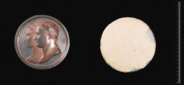 Curator: Here we have a portrait medal of Emperor Napoléon I, created by Bertrand Andrieu, part of the numismatic collection at the Harvard Art Museums. Editor: It has such a severe, almost cold feel to it, doesn’t it? Like a Roman emperor gazing into the future. Curator: Absolutely. The laurel wreath, the sharp profile...it's all very deliberately invoking classical power. It’s no accident, considering Napoleon's own complex relationship to ideals of the Roman empire. Editor: Well, that's Napoleon for you, always mythologizing himself! I can't help but think about the costs of all this self-aggrandizement, the human price of empire. Curator: Indeed. And maybe that coldness reflects that too. It's a powerful image, loaded with history, ambition, and, dare I say, a certain melancholy. Editor: It certainly gives one plenty to think about – the weight of legacy and the stories we tell ourselves about power.