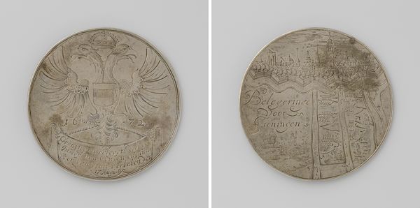 This silver medal, of unknown origin, commemorates the siege of Groningen. Prominently, we see the city's skyline, but it is the heraldic eagle that commands our attention. The double-headed eagle, crowned and bearing a shield, is not merely decorative. It echoes the Roman Aquila, the emblem of imperial power, reborn in the Holy Roman Empire. This symbol reappears across Europe, signifying dominion and authority, each time subtly altered to fit local narratives. Consider how such symbols persist and evolve. The eagle, an ancient sign of strength, undergoes a metamorphosis. Transmitted through generations, and subconsciously altered, this powerful emblem engages us on a primal level, stirring emotions tied to authority and protection. The image appeals to our collective memory. Thus, the eagle on this medal is more than heraldry. It is a link in an unbroken chain, a testament to the enduring power of symbols to transcend time and reshape themselves in the crucible of human experience.